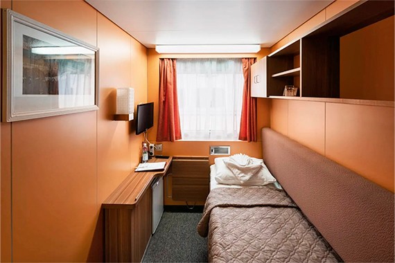 Одноместная каюта со всеми удобствами, расположенная на шлюпочной палубе. Площадь кают: 437–440 ≈ 6,6 м², 441–446 ≈ 7,8 м². В каюте: одно спальное место, шкаф для одежды, холодильник, телевизор, фен, радио, ванная комната (душ, туалет, раковина), кондиционер, обзорное окно, розетка 220V.