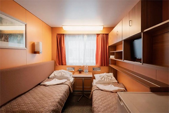 Двухместная каюта со всеми удобствами, расположенная на средней палубе. Площадь каюты ≈ 10,5 м². В каюте: два спальных места, шкаф для одежды, холодильник, фен, радио, ванная комната (душ, туалет, раковина), кондиционер, обзорное окно, розетка 220V.