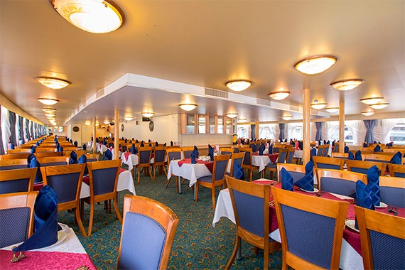 Питание, организованное по гастрономической концепции «Родные берега». Круизная кухня выполнена в лучших традициях побережья Поволжья, Дона, Чёрного моря, Енисея, Русского Севера и Восточной Сибири. В приготовлении используются свежие локальные продукты из местных регионов путешествия.