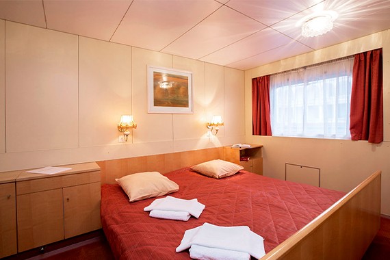 Двухместная каюта со всеми удобствами, расположенная на главной палубе. Площадь каюты ≈ 9 м². В каюте: два спальных места, шкаф для одежды, холодильник, фен, радио, ванная комната (душ, туалет, раковина), кондиционер, обзорное окно, розетка 220V.
