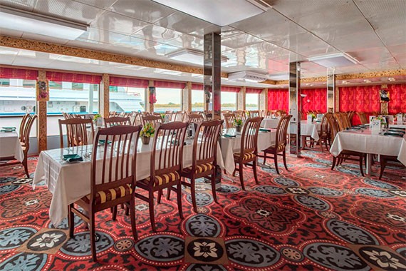 Выбирая круиз, будущие пассажиры могут определиться и с типом питания на борту. Есть два тарифа — «Базовый» и «Расширенный». В обоих случаях предусмотрено три стандартных приема пищи — завтрак, обед, ужин.