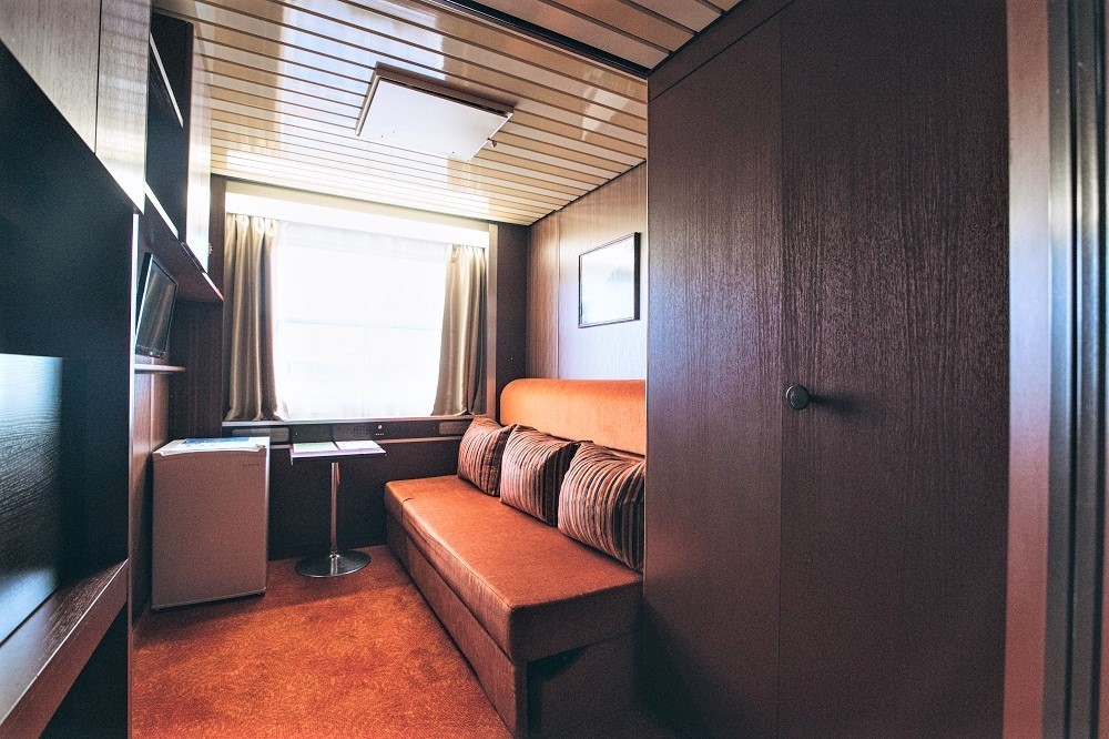 К категории Полулюкс относятся каюты: 106–113, 202–210. Двухместная каюта со всеми удобствами, расположенная на главной и шлюпочной палубах. Площадь каюты ≈ 10,6 м².